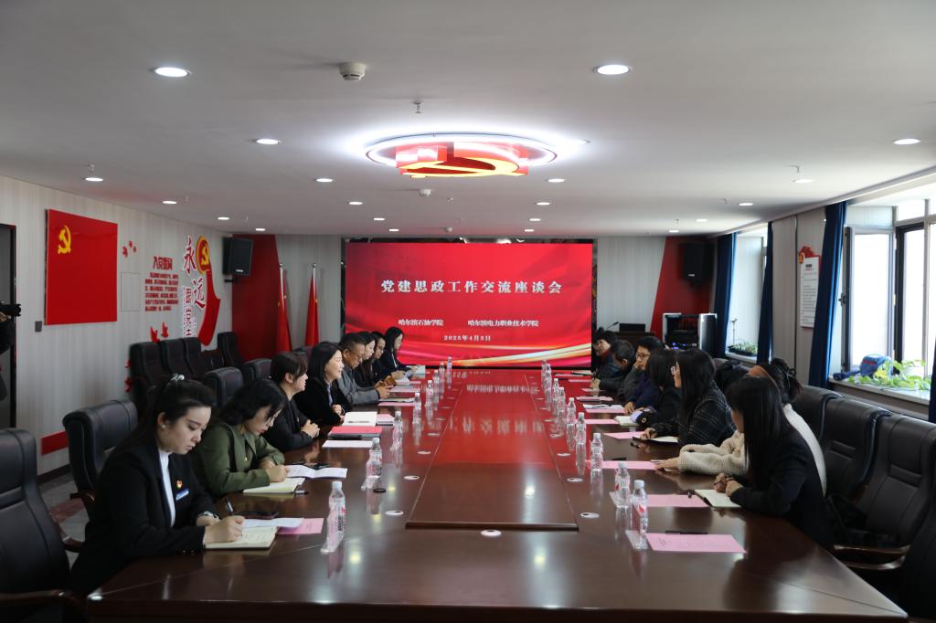 哈尔滨电力职业技术学院领导和教师围绕学校的历史沿革、党建工作、思政课建设、电力特色育人等方面进行介绍。两院教师通过交流与探讨、相互学习、取长补短、共同提高。