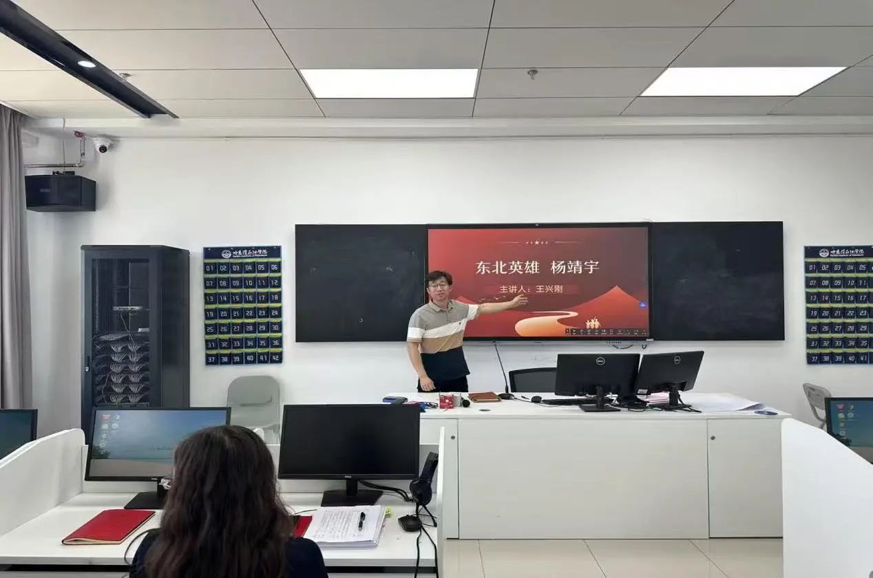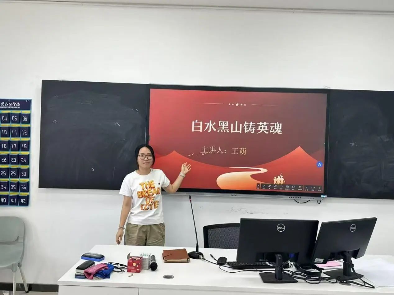 王萌老师以《白水黑山铸英魂》为题,用英语讲述东北抗日联军在"白山黑水"间的斗争史,引发党员对"精神传承与时代使命"的深度思考。