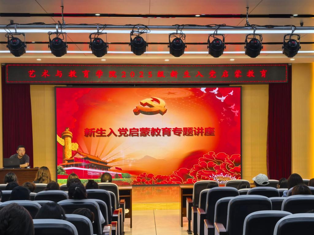 为进一步加强青年大学生的理想信念教育,提升全体2025级新生对党的认识,端正入党动机,熟悉入党流程,号召同学们积极向党组织靠拢,2025年8月27日,艺术与教育学院在518会议室开展2025级新生入党启蒙教育,学生党支部书记贾延迪担任主讲,共230余名2025级学生参加。