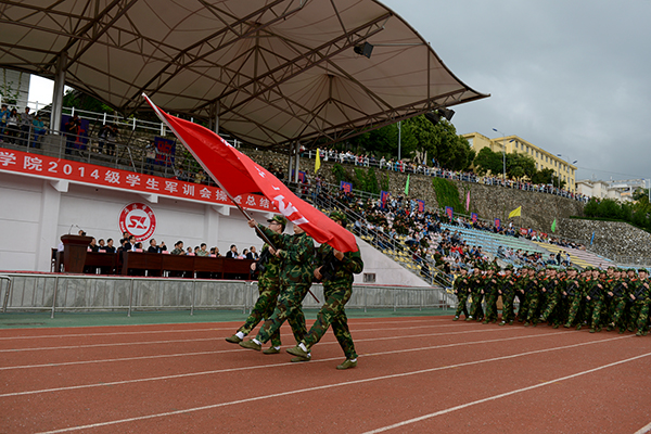 9月18日,best365隆重召开2014级学生军训会操暨总结大会,全体2014级学生以分列式、刺杀操、花样队列和军体拳表演等形式展示了他们半个月来的军训成果。校领导张景书、刘建林、左晓民、王思怀、魏书堂,解放军西安政治学院副院长赵岁步大校,2014级学生军训团团长、解放军西安政治学院杨定友大校,学生军训团政委、校学生处处长、人武部部长石启英,商州区委常委、商州区武装部政委张翔观看了会操表演并为受表彰的军训先进集体和个人颁奖。各院(部)、各职能部门主要负责人,2014级学生辅导员参加了大会。大会由副校长魏书堂主持