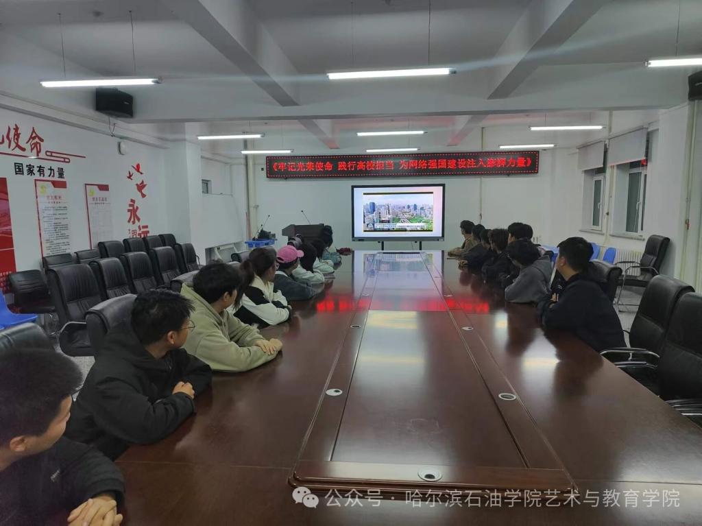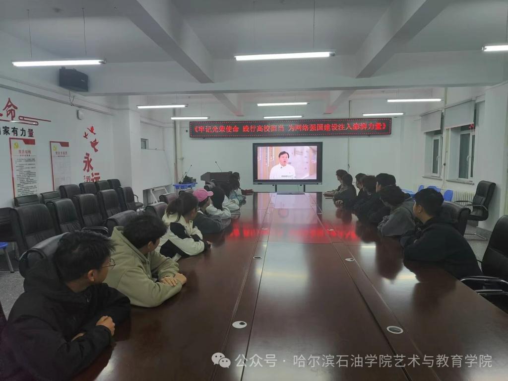 为深入学习习近平总书记关于网络强国的重要思想,牢记高校使命担当,奋力回答好“强国建设 高校何为”的时代课题,为建设教育强国、网络强国注入高校力量。2024年10月11日,艺术与教育学院党总支组织全体党员观看高校党组织示范微党课(第二阶段)第7讲《牢记光荣使命 践行高校担当 为网络强国建设注入澎湃力量》。