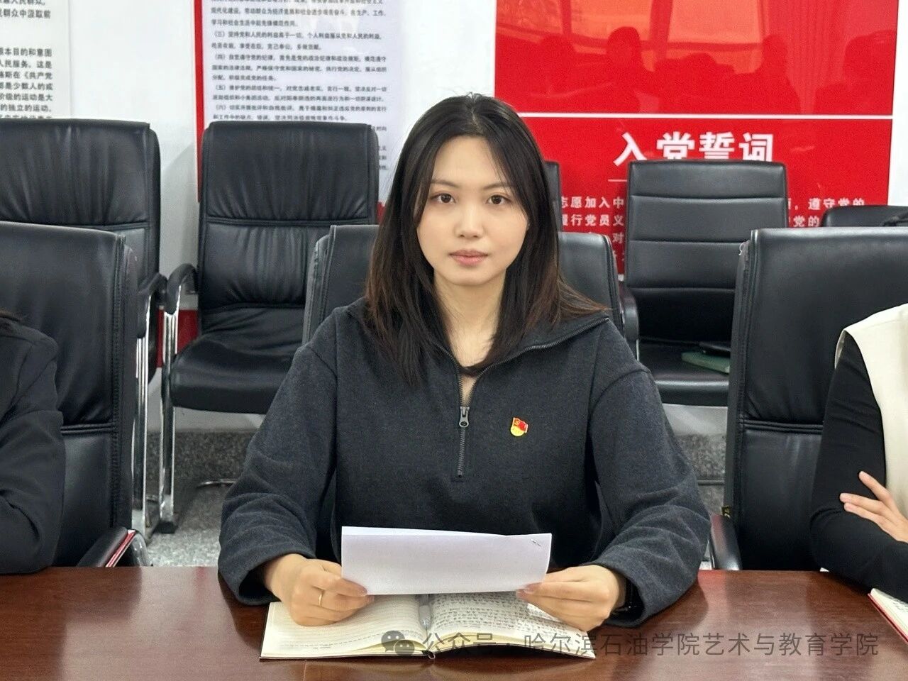 学生第二党支部组织委员王静竹作交流发言。作为教育一线工作者,要深入学习并落实新征程上进一步全面深化改革行动纲领,要始终坚持立德树人的根本任务,将党的教育方针贯穿于教育教学全过程,为培养德智体美劳全面发展的社会主义建设者和接班人贡献自己的力量。