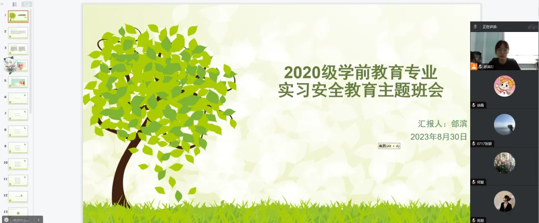 2023年8月30日及8月31日,艺术与教育学院采用腾讯会议的方式,召开了2020级学生“3+1”企业综合实习安全教育主题班会,会议由2020级辅导员郐滨、周铭主持,2020级全体同学参加。