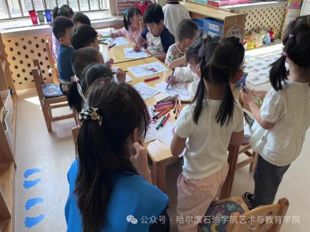 实践活动中,小朋友们积极参与艺术创作,表达自我;与实践小老师们欢乐互动,增进感情。绘画对幼儿来说是自由的、快乐的、充满想象的,色彩斑斓的、线条流畅的、造型夸张的,是他们感受美、表现美、创造美的杰作。本次活动,借助儿童喜闻乐见的艺术方式,帮助儿童表达自我,提升信心,提高美学素养。