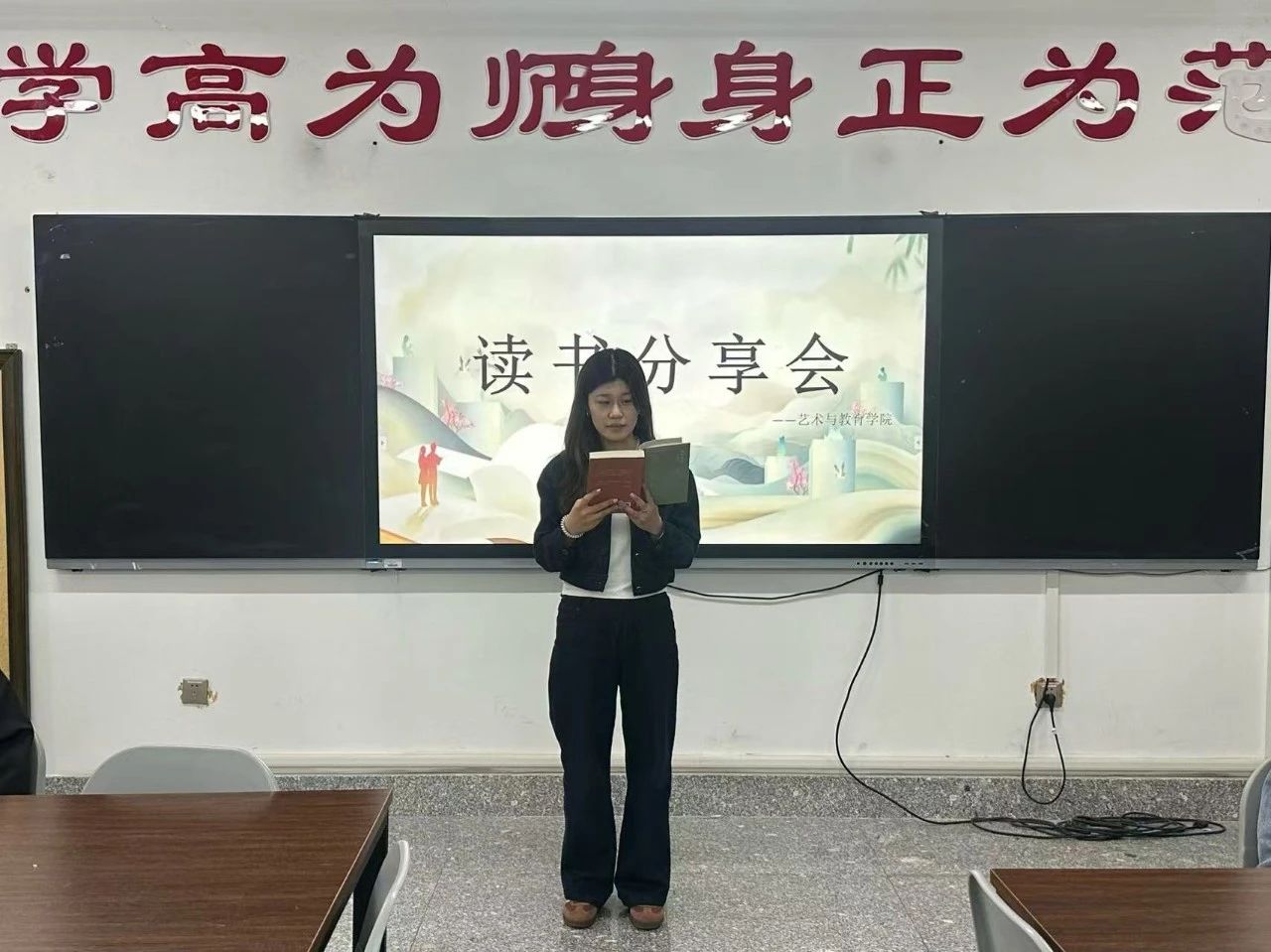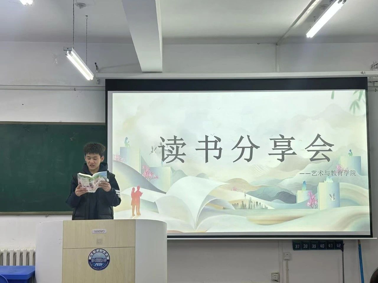 为深化美育教育内涵,培养学生人文艺术素养,在世界读书日来临之际,根据《关于开展金沙检测线路js69第十三届读书节“阅读点亮青春”活动》的通知要求,2025年4月27日,艺术与教育学院组织各班级开展“以书会友,共话书香”读书分享会活动。本次活动以班级为单位,在全院范围内掀起阅读热潮,同学们在各自班级中畅谈读书心得,共享阅读乐趣。