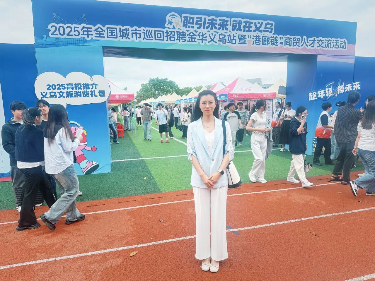 2025年4月22日,“职引未来—2025年全国城市巡回招聘金华义乌站暨‘港廊链’商贸人才交流活动”在义乌工商职业技术学院湖畔操场盛大举行。艺术与教育学院辅导员孙宁参与此次活动,旨在为学生搭建广阔的就业平台,拓展校企合作空间,探索商贸人才培育的创新模式。