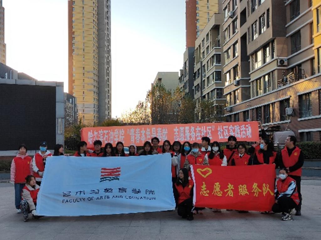 为深刻领会习近平总书记实践育人重要论述的精神实质,深入实施“大学生社区实践计划”,进一步完善我院社区实践活动服务体系,规范和促进大学生开展社区实践活动,提高我院学生对社会的责任感和使命感,艺术与教育学院于2023年10月28日-2023年11月8日在丽景花园社区、泰和轩社区、欢乐谷幼儿园第三分园 、聚源花园社区、柒季城社区、龙江第一村社区、学伟国际城社区、百姓康年老年公寓等多地,组织开展“社区有我,青春报道”社区实践活动,我院2023级全体学生以团支部为单位参加了此次活动。
