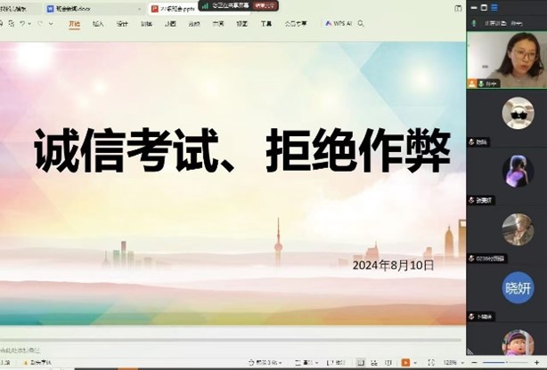 为进一步加强我院学风建设,培养学生诚信考试意识,提高学生思想道德修养,树立诚实守信的优良学风,营造公平公正的考风,艺术与教育学院于2024年8月10日-13日,各年级辅导员组织缓补考学生开展“考风考纪诚信教育”主题班会。