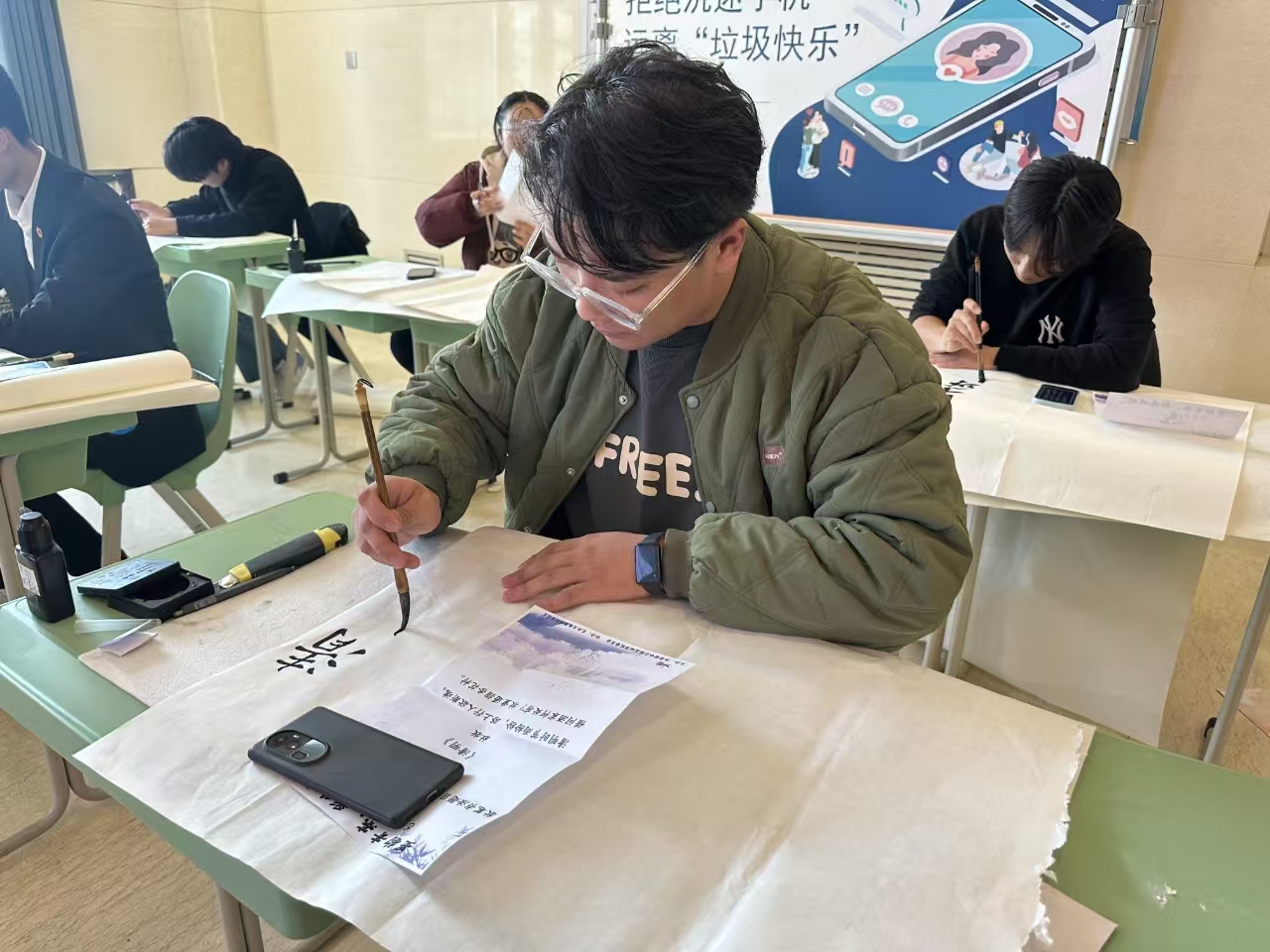 比赛分为书法(硬笔和软笔)、绘画比赛两部分。选手们抽取相对应的序号题目,围绕大赛主题进行现场创作。比赛现场气氛热烈,选手们全神贯注地创作,一笔一墨,尽展书画艺术挥毫落纸之神韵;一字一画,尽显书画艺术对祖国大好河山的无限眷恋与美好祈愿。一幅幅主题鲜明、构思新颖、内容丰富的作品跃然纸上,反映出当代青年学子爱党爱国、热爱生活、努力学习、积极向上的精神。