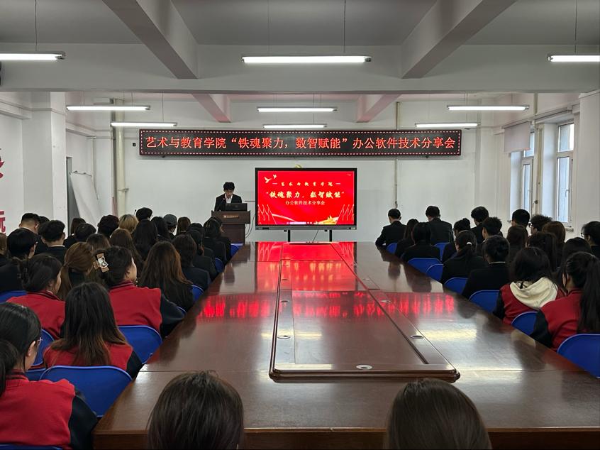 为了进一步提高同学们在日常学习和未来工作中的办公效率,明确各类办公软件的功能和具体使用方法,增强自我解决问题的综合能力。根据《金沙检测线路js69开展师生铁人精神素养提升教育工程的实施方案》的要点及团委《关于组织开展金沙检测线路js692024年寒假学生作业》的通知。2025年3月6日艺术与教育学院在艺术楼415会议室成功举办以“铁魂聚力,数智赋能”为主题的办公软件技术分享会。艺术与教育学院学生会联合会主席团成员及各部门负责人,2022级、2023级、2024级部分学生代表参加了此次活动。