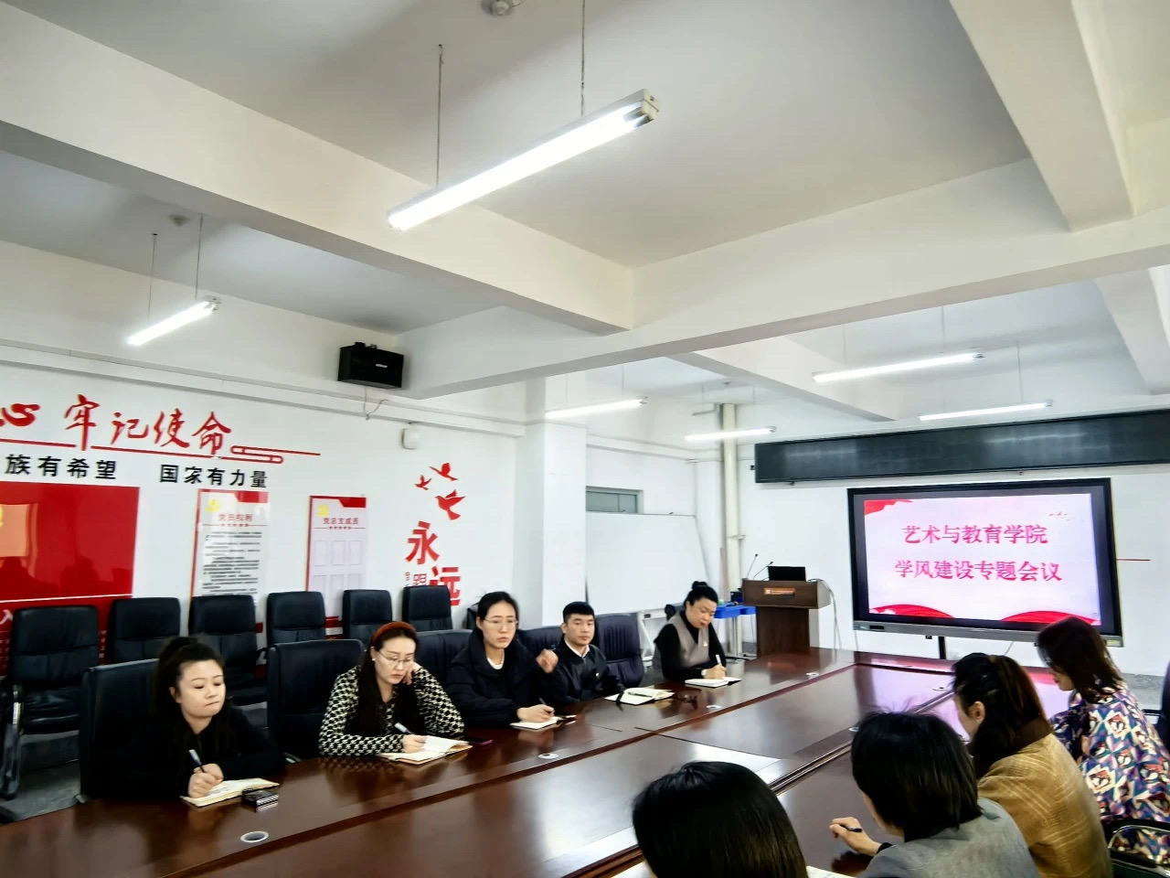 为深入贯彻落实立德树人根本任务,进一步优化学风教风环境,提升教育教学质量。2025年3月25日,艺术与教育学院组织开展学风建设专题会议,重点围绕课堂秩序管理问题展开研讨,并提出针对性整改方案。教学院长刘锡洋、教学督导组、专业辅导员及教师代表参会,共议学风建设新路径。
