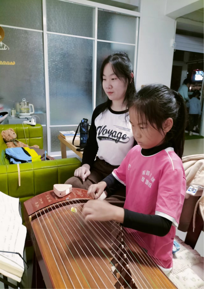 在上课的过程中,我也遇到了困难,比如课堂秩序,学生不配合,正是这些小小的挫折,让我越战越勇更让,我懂得作为一名教育工作者要在教学活动中建立平等的师生关系,而且教师要把自己当成活动中的一员,学生们的良师益友。俗话说:“知之者不如好之者,好之者不如乐之者”,充分调动学生的主观能动性,将他们的学习兴趣利用起来,使他们在快乐中学习。比如,古筝中练习枯燥的指法,可以与儿歌相结合,让学生的弹奏更加有兴趣。看到同学们从一开始连琴弦音都不认识到能看着谱就把乐曲弹下来,心里就感觉多累都是值得的,那一个个天真的笑脸说一句“老师好!”,我就会默默的下决心:今天这节课一定要上的“漂亮”,这个称呼责任重大!
