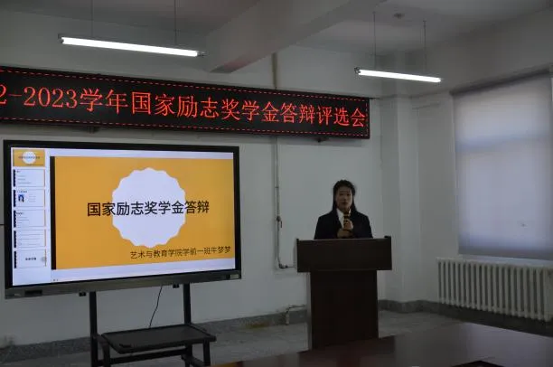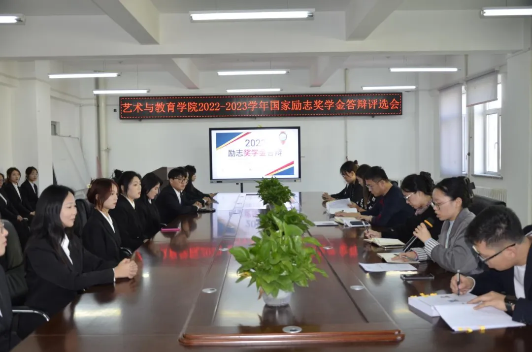 为切实做好2022-2023学年度国家励志奖学金评选工作,促进学院学风建设,发挥优秀学生的榜样作用,艺术与教育学院于2023年10月23日在艺术楼415召开2022-2023学年国家励志奖学金答辩评选会,校外实习同学线上参会。艺术与教育学院党总支书记刘强,党总支副书记王昱及各年级辅导员出席并担任评委,本次会议由周铭老师主持