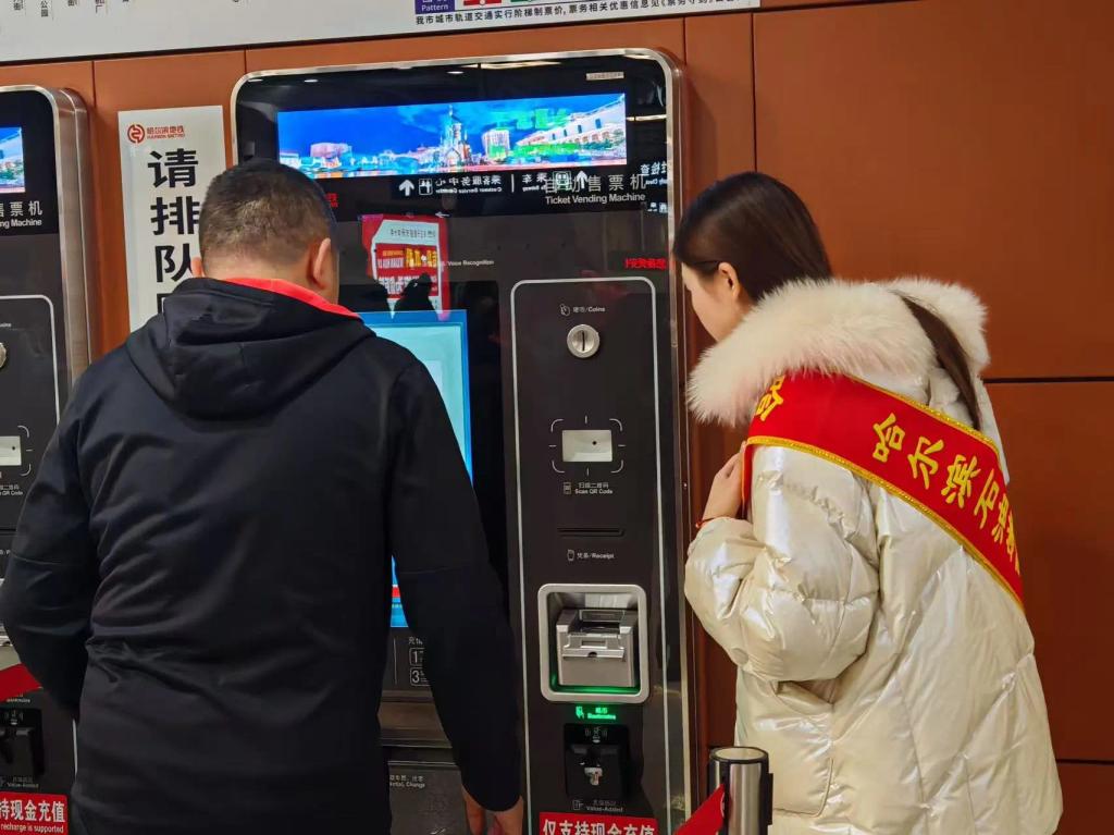 活动期间,志愿者们分布在自动售票机、进出站口、换乘通道等关键点位,为乘客提供购票指导、秩序维护、行李搬运等服务。结合学院专业优势,教育专业的志愿者特别关注老人、儿童及携带大件行李的乘客,主动提供帮扶,展现了学院“以美育人、以文化人”的教育理念。