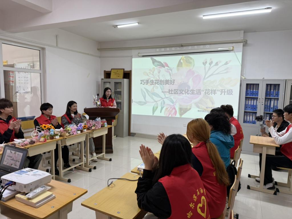 为丰富辖区居民文化生活,营造积极向上的社区文化氛围,扎实推进“创艺筑区”志愿服务项目。在地中海阳光社区活动室,一场别开生面、充满创意的手工制作活动正在热闹地进行着。艺术与教育学院青年志愿者协会——“艺”家志愿服务队以扭扭棒手工制作为载体,创新志愿服务形式,组织开展“巧手生花创美好”主题活动,志愿者通过结合所学专业知识,以资源整合、技能培训等方式,将传统手工艺与灵活就业需求相结合,让志愿服务项目内容更接地气、更聚民心。