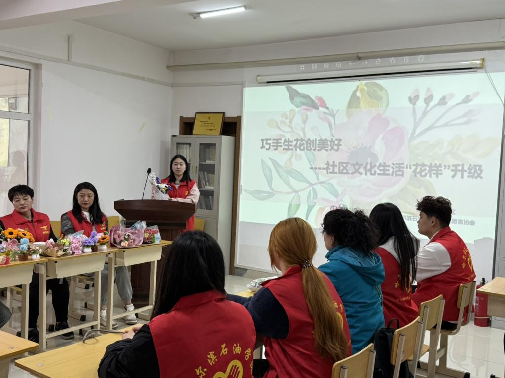 在制作环节,志愿者们凭借丰富的知识储备和专业技巧,向参与者详细讲解扭扭花制作的步骤与要点。从扭扭棒的弯折塑形,到色彩的搭配组合,再到最后的组装固定,每一个细节都阐释得精准到位。社区居民与工作人员认真聆听,积极提问,志愿者们逐一耐心解答并进行现场示范指导。