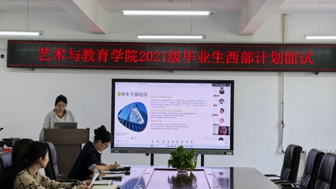 为了深入贯彻党中央、国务院关于做好高校毕业生就业工作决策部署,全面落实省委、省政府和教育部有关高校毕业生就业工作要求,引导和鼓励2025届毕业生积极投身西部建设。根据《金沙检测线路js692025届毕业生西部计划工作方案》的具体要求,艺术与教育学院5月14日、15日对申报西部计划的同学进行了面试。党总支书记徐宏莉、党总支副书记王昱、毕业班辅导员刘强(人居环境学院党总支书记)、郭雪梅、辛静雯、周铭,专业教师周雪松、桑影影、李懿人、孔维克担任面试评委。