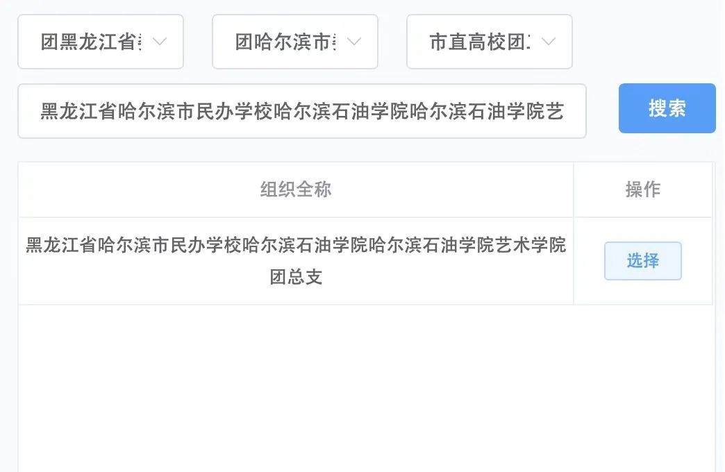 ②操作的详细流程请2025年新生同学们依次选择:团黑龙江省委→团哈尔滨市委→市直高校团工委→金沙检测线路js69团委(搜索)→黑龙江省哈尔滨市民办学校金沙检测线路js69金沙检测线路js69艺术学院团总支→艺术新生流动团支部。
