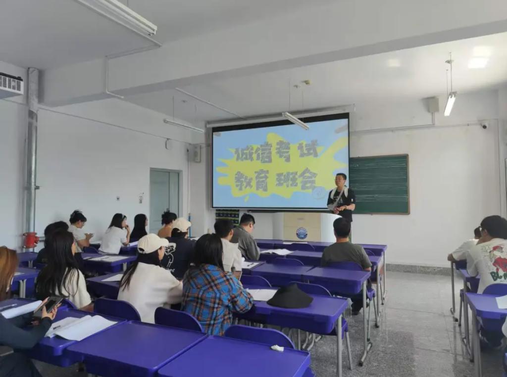 各年级辅导员针对期末考试,强调违纪作弊的后果,引导学生自觉抵制违纪作弊行为,通过一系列真实案例,强调了诚信考试的重要性,引导同学们严格遵守考试规章制度,以端正的态度建设良好学风、考风,并签订诚信考试承诺书。参加考试时党员、学生干部挂牌考试。通过主题班会,同学们认识到诚信考试的重要性,意识到正确的复习方法对考试的作用。辅导员对同学们提出以下要求:充分利用考前时间,认真复习;提高自身修养,以诚信的态度对待每一场考试,杜绝作弊行为;端正考试态度,在考试过程中尊重监考教师,做到文明考风,诚信考试,自觉遵守考场纪律。