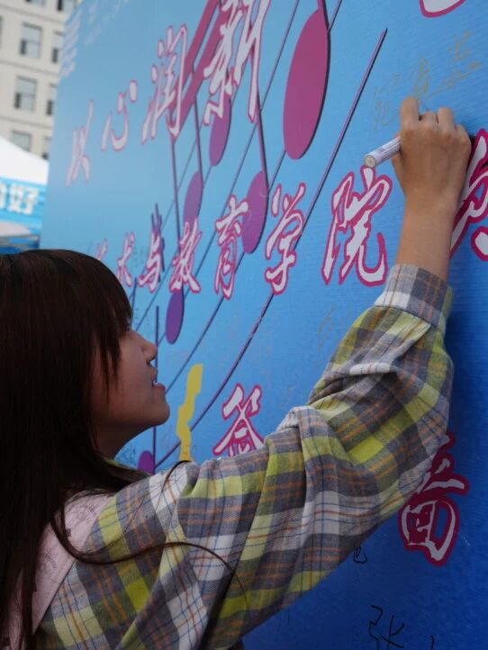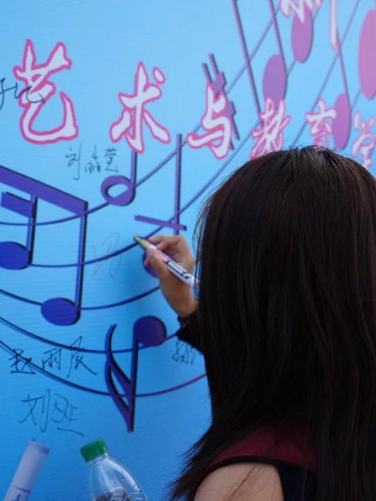 学院特别设置“以心润新‘艺’同成长”签名墙和合影区,新生与家长在签名墙上签下自己的姓名并留下第一张校园合影,用彩笔写下对未来的期许。