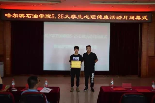 通过开展了一系列的心理健康教育活动,增强了大家对心理健康的理解,提高了学生的心理健康意识。心理健康是每个人一生的追求,我们希望在大家的共同努力下,我们一定会冲破人生的重重难关扬起生命的风帆,立志做一名成功的大学生。最后,由主持人宣布,机械工程学院以95.8分的成绩获得本届心理剧大赛决赛的第一名。由校团委王锦石书记为获得第一名的队伍颁奖。
