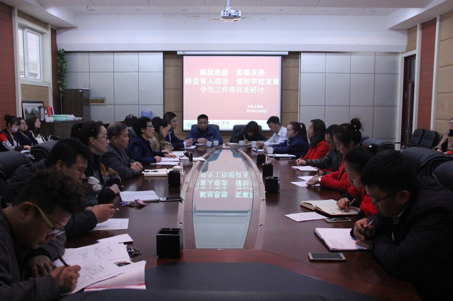 为加强辅导员队伍建设,切实提高金沙官网辅导员队伍的工作能力和业务水平。3月30日下午,学工处在320会议室组织召开“解放思想,实事求是,转变育人观念,谋划学校发展”学生工作培训及研讨大会。张金学校长在会上作重要讲话,栾敏副书记主持会议。