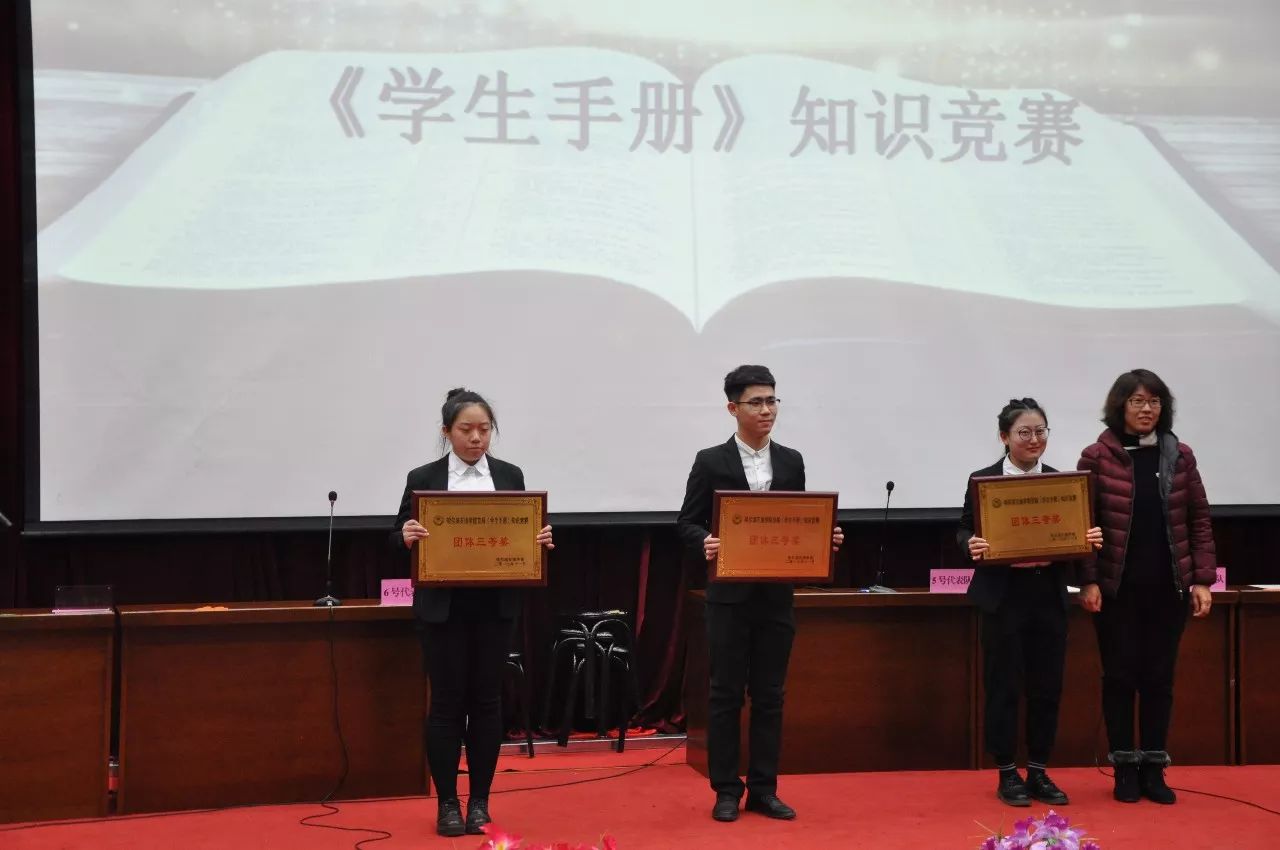 为进一步加强金沙官网学风建设,增强学生遵守校纪校规意识和自我教育与管理意识,校学工处组织举办了以“知校规、明校纪、讲文明、促学风”为主题的金沙官网首届《学生手册》知识竞赛,比赛于12月7日晚17时30分在图书馆报告厅举行。校党委副书记、副校长栾敏出席本次活动。参加本次比赛的还有学工处处长宁晶、副处长宋旭、团委书记王锦石、自动控制工程学院党总支书记徐宏莉、信息工程学院党总支副书记周雪松以及各二级学团总支书记和辅导员。各学院部分学生代表观看了比赛。