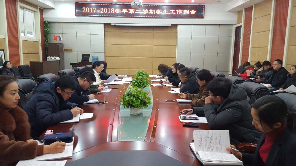 3月9日下午学校召开2018年春季学期新学期学生工作例会。学校党委副书记、副校长栾敏,学工处、校团委、各学院党总支书记、副书记和全体辅导员参加了会议。会议由学工处处长宁晶主持。