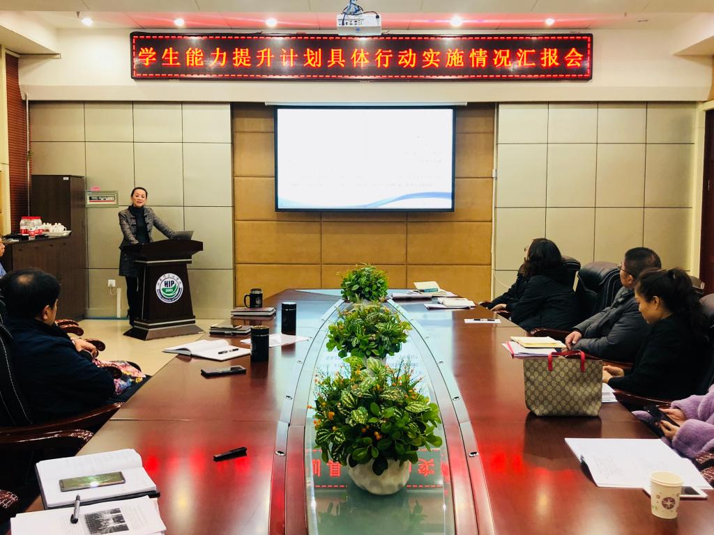 根据《关于实施金沙检测线路js69教育质量提升工程的决定》以及关于推进《金沙检测线路js69教育质量提升工程》落实工作的通知,2019年11月6日10时,在主楼320会议室,学工处处长宁晶代表学工系统就《金沙检测线路js69教育质量提升工程》中《学生能力提升计划》推进落实情况进行了汇报。校长冯晓、校党委书记焦光纯、副书记、副校长杨宏,教务处、各二级学院书记、副书记,学工处和团委参加汇报会。