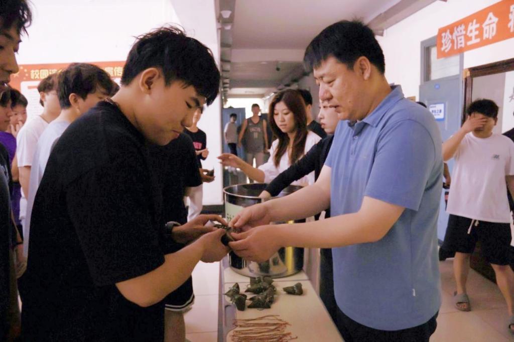 他们都热情地向同学们送上节日祝福,并耐心介绍每一种粽子的特色。在此期间有数位同学聚在一起兴奋地说:“没想到在学校也能感受到这么浓厚的端午氛围,这些粽子和五彩绳让我特别感动,感觉就像在家过节一样。”