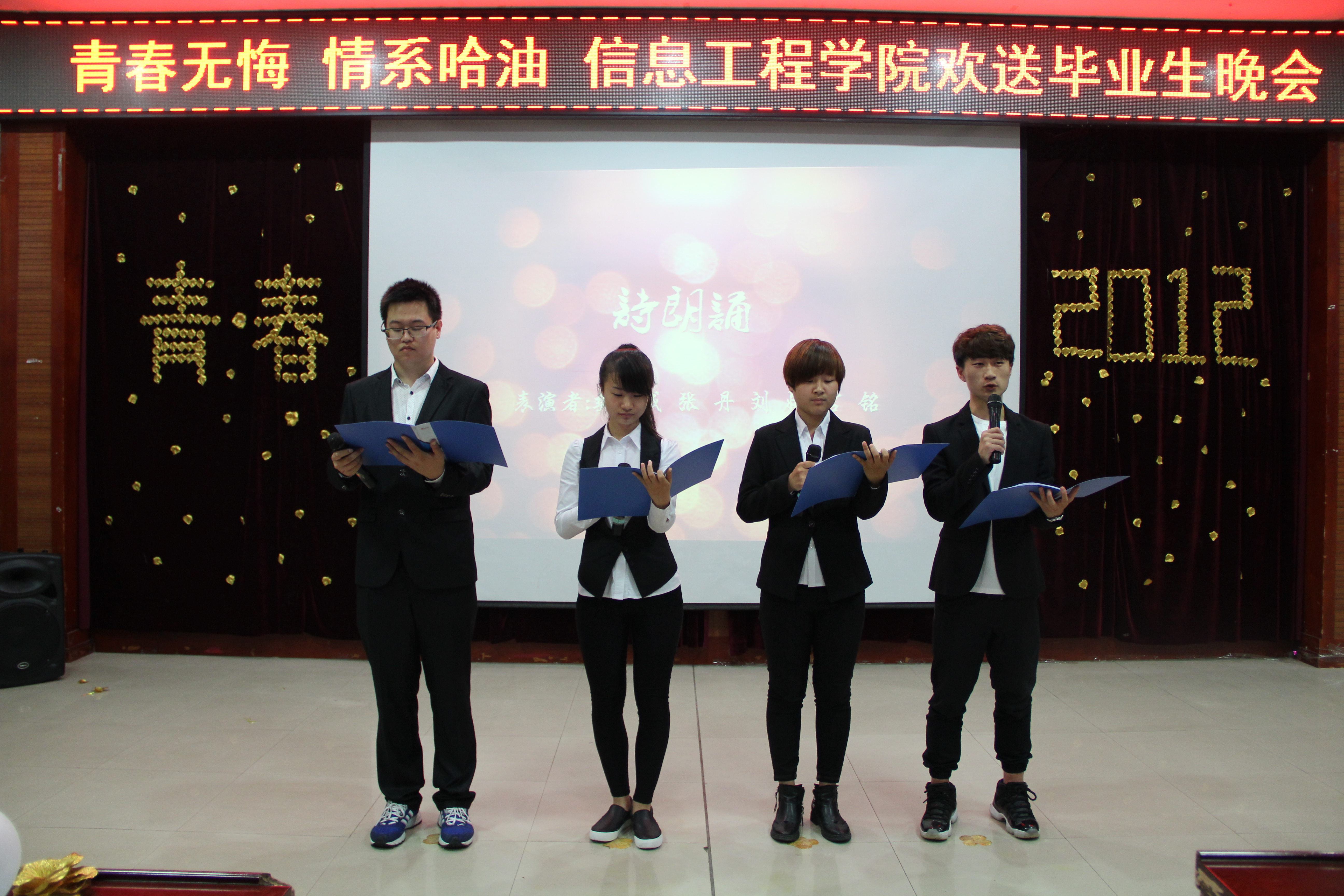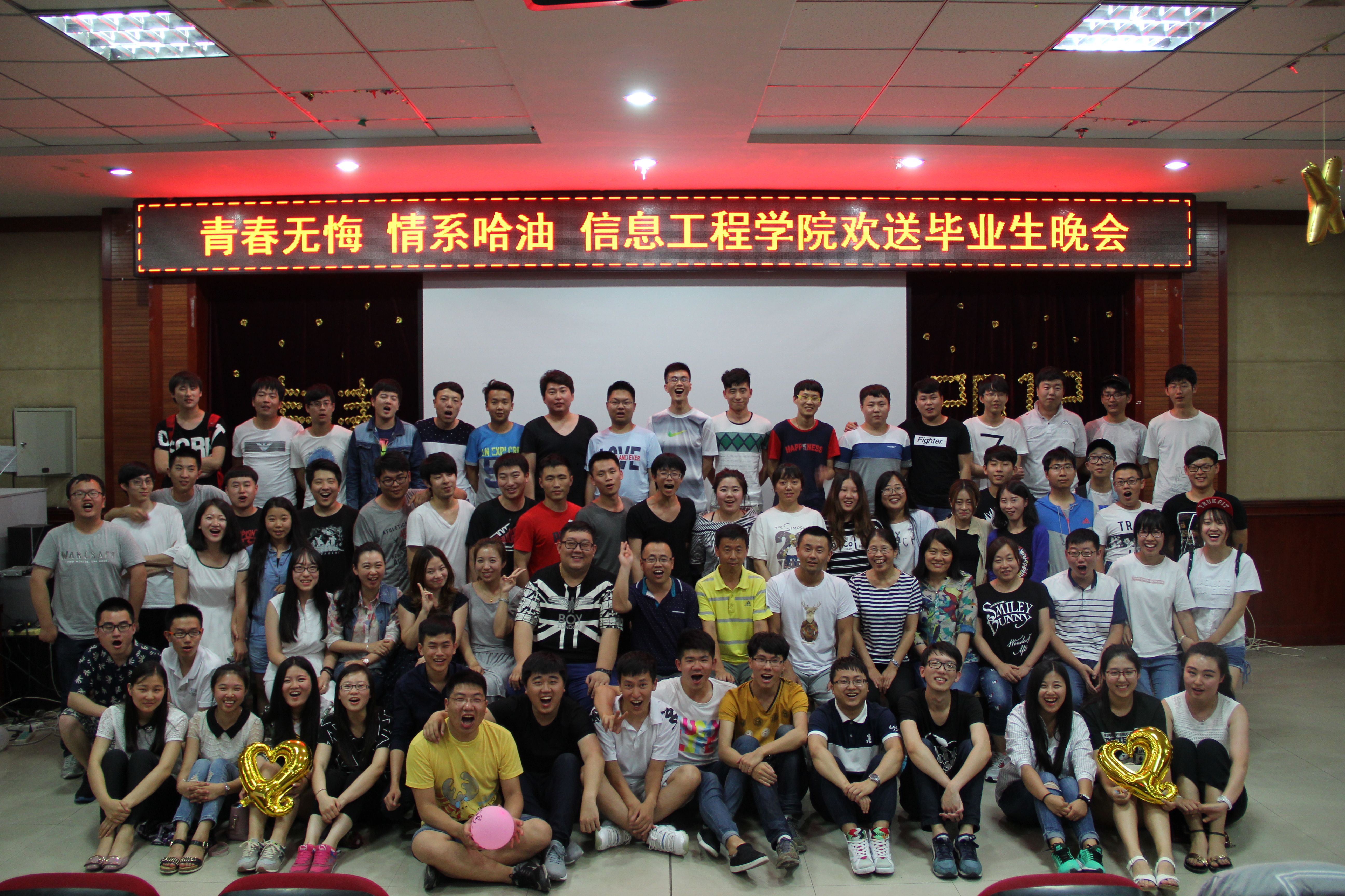 悠悠夏季,栀子飘香,又到一年毕业季。为庆祝每位同学能够从此载梦飞翔,信息工程学院于2016 年6月21在主教518举行以“青春无悔,情系哈油”为主题的毕业生联欢晚会。参加此次活动的嘉宾有信息工程学院院长张春志老师及所有老师、16届毕业生,13级、14级学生代表、15级全体成员共怀青春时光。