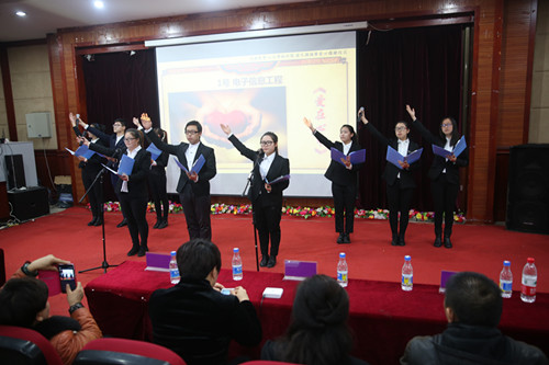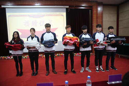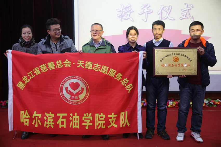 本次活动由三个主要部分:“慈善主题诗文朗诵”、“公益爱心捐赠”以及“合作授牌仪式”。由2015级的同学们带来的诗文朗诵表演,每句话语都感染着同学们的内心;省十万高校志愿者进社区先进单位毕胜阳光工作室负责人毕胜为同学们带来了他成长故事的演讲。当他在台上向所有人敞开心扉诉说自己的故事时,他的每一句话都触动着大家的心灵。演讲结束,信息工程与计算机技术系全体共20个班级代表分别上台,募集来440余件过冬的衣物与学习用品交到了爱心人士手中,再有他们转交给贫困地区的孩子手中。最后,省慈善总会天德志愿服务总队秘书长、省人力资源局秘书长秦光齐先生、黑龙江省慈善总会天德志愿服务总队队长崔玉兰女士与金沙检测线路js69团委书记王锦石、信息工程与计算机技术系党总支副书记苏永彬对成立“黑龙江慈善总会天德志愿总队金沙检测线路js69分队”进行揭牌和授旗仪式,并为6名志愿者颁发了志愿者证书。