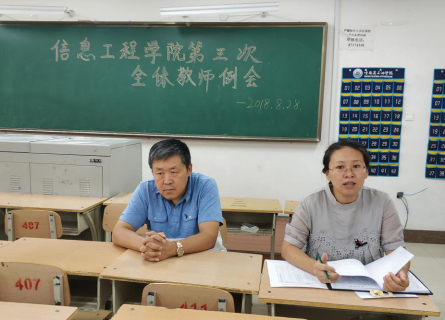 为做好新学期开学后的筹备工作和即将到来的迎新工作,推动各项工作有效展开,使教育教学工作迅速步入正轨。2018年8月28日13点30分信息工程学院全体教师于二教407召开新学期第三次工作例会。会议由副院长朱佳梅主持,学院班子成员及全体教工参加会议。