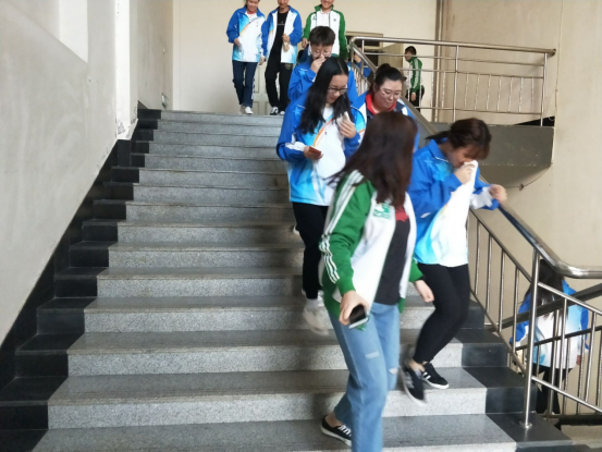 主持人对公共场所可能存在的消防安全隐患和消防应急方法做了详细的讲解并观看了危险来临时如何正确自救视频。各负责人带领同学们,按照培训所学安全知识组织班级同学弯腰、低头、用手捂住口鼻迅速撤出教室,按照紧急疏散路线,全部有序撤离到教学楼前广场的安全地带。