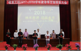 2018年6月13日晚五点30分,信息工程学院在图书馆报告厅隆重举行信息工程学院2017-2018学年春季学期表彰大会。出席本次大会的嘉宾有金沙检测线路js69教务长信息工程学院院长胡文教授、党总支书记毛雷老师,院办助理孙毅老师,团总支书记张宏鹏老师,辅导员黄家政老师,学院全体学生参加了本次大会。