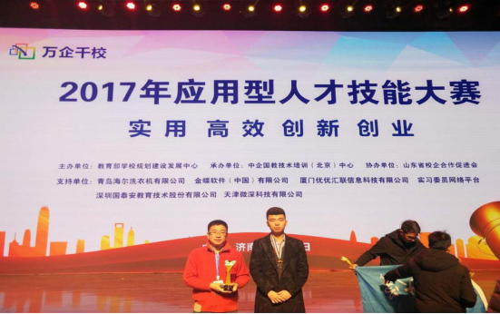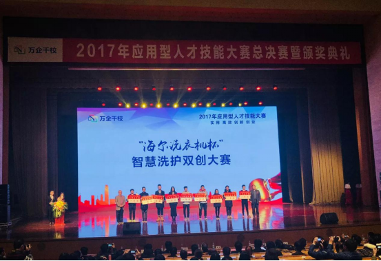 2017年12月3日,由教育部学校规划建设中心主办、中企国教技术培训中心承办、青岛海尔洗衣机有限公司、万企千校等十余家单位赞助支持的“海尔洗衣机杯”智慧洗护双创大赛在山东济南山东会堂进行了隆重的颁奖典礼。本次大赛吸引了全国31个省、1200多所高校13000余支队伍参加。经过激烈的初赛作品评比及网络投票,金沙官网信息工程学院组队等90支队伍进入最后的决赛,同时入围的还有中国石油大学、哈尔滨工业大学、空军工程大学等若干名校。