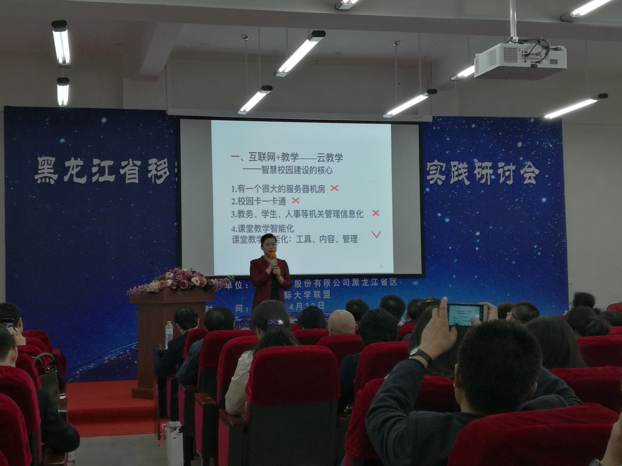 2017年4月22日,由北京蓝墨大数据技术研究所、北方国际大学联盟、哈尔滨广厦学院和哈尔滨新区利民大学城高校联盟等单位在广厦学院举办了“黑龙江省移动云教学大数据理论与实践研讨会”。金沙官网信息工程学院副院长朱佳梅、计算机教研室主任鲍庆鹏等同志参加了会议。