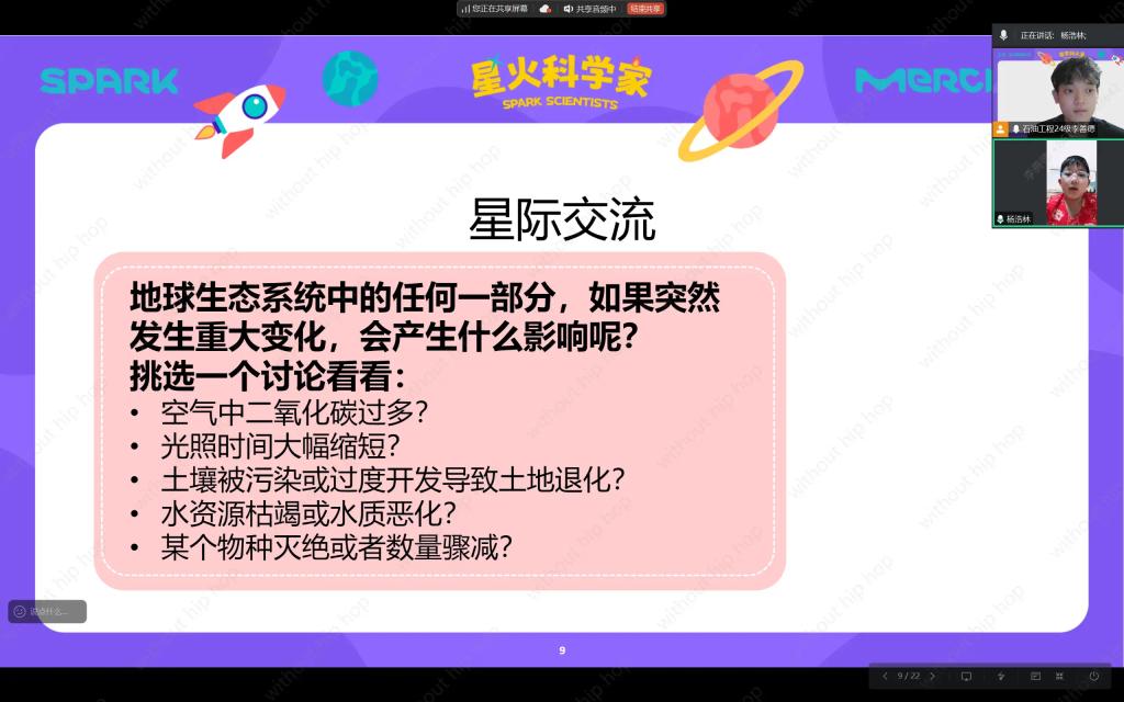 为提升中小学生的综合素养,激发他们的好奇心、创造力和跨学科思维,为未来成长为科学家和创新者打下基础,金沙检测线路js69信息工程学院青年志愿者协会开展了“星火科学家”科普志愿服务活动。此活动围绕“可持续发展”理念,通过故事化和游戏化的学习方式,带领学生探索绿色生态、生命科学和智慧科技在解决全球问题中的实际应用。
