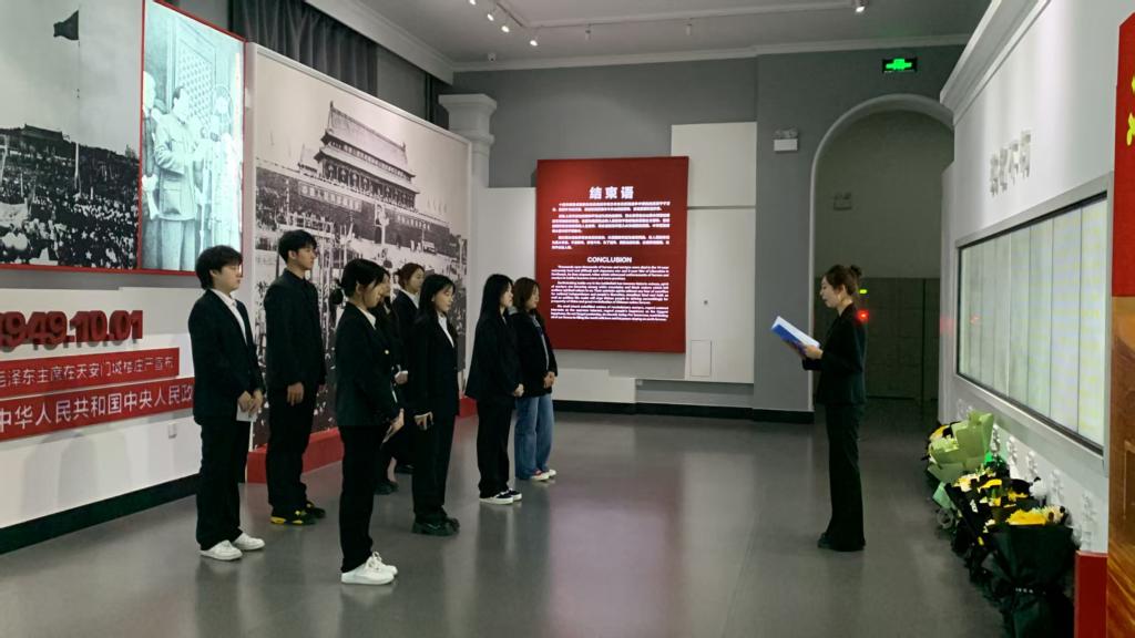 活动当天,志愿者们怀着激动的心情进入纪念馆,认真阅览了东北抗日联军和解放战争时期革命先烈的英勇事迹。志愿者们深受触动,纷纷表示要铭记历史,珍惜当下,以实际行动传承先烈精神,并为烈士们献上了花朵。随后,在主题发言环节,志愿者们以“青春心向党,奋进新时代”为题分享感悟。每位志愿者的发言都铿锵有力,引发了在场志愿者们的强烈共鸣。活动最后,全体志愿者在纪念馆前庄严宣誓,高举右拳,誓言声声,表达了青年一代继承革命传统、担当时代使命的坚定决心。