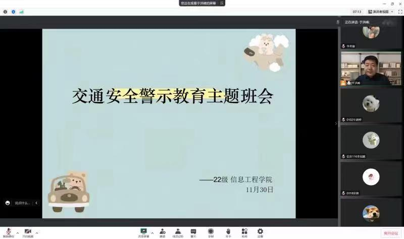 12月2日是我国第十一个交通安全日,为进一步增强我院学生的交通安全法规意识和安全文明意识,树牢同学们的交通安全理念,保障在假期间同学们能做到平安出行。信息工程学院各年级辅导员于11月29至30日期间组织召开了以“文明守法,安全回家”为主题的交通安全主题班会。