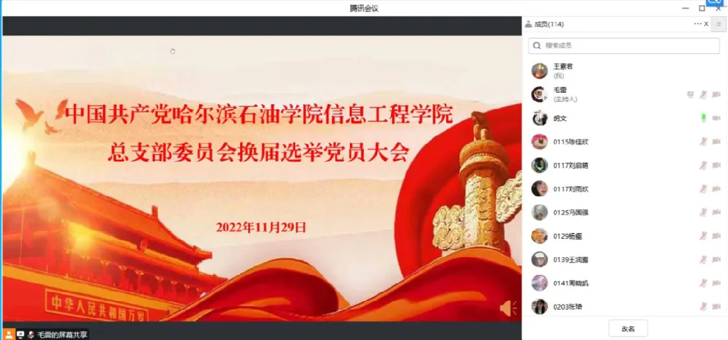 根据《中国共产党章程》、《中国共产党基层组织选举工作条例》、《中国共产党普通高等学校基层组织工作条例》等有关规定,66名正式党员通过无记名投票进行了差额选举。选举产生:于洪峰、毛雷、邓春伟、史焕卿、朱佳梅、鲍庆鹏(以姓氏笔画为序)为新一届党总支委员会委员。