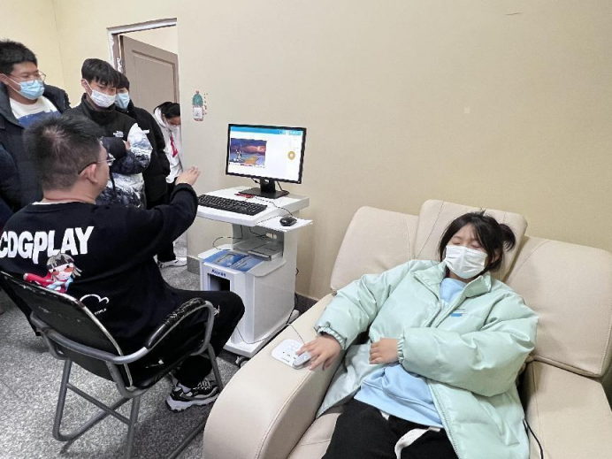 活动开始前,毛雷书记为22级学生详细地讲解了心理咨询室的主要工作和日常事务,并着重强调了心理健康教育对当代大学生的必要性。随后,在心理咨询室主任彭雷的带领下同学们体验了新颖的情绪发泄机器、可以观测心理情绪变化的按摩椅、舒缓情绪沙盘等多种有趣的活动。同时,心理咨询室内有多种玩具手办,激发了同学们内心的童趣。活动结束后,同学们纷纷反映心理咨询师的器材新颖独特,彭雷老师的讲解也十分专业,在彭雷老师的讲解下同学们对心理健康有了更深刻的了解。此次活动为同学们带来了一场有说有笑,完全不同的心理之旅;让同学们沉浸其中,体验到前所未有的轻松与喜乐。