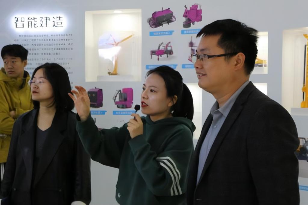 随后,工程管理系主任何佳老师围绕智能建造实训馆文化展厅以及一期建设展开深入讲解,从场馆设计理念、设备配置到教学实践应用,清晰呈现了实训馆在培养学生实践能力、推动产学研融合方面发挥的重要作用。
