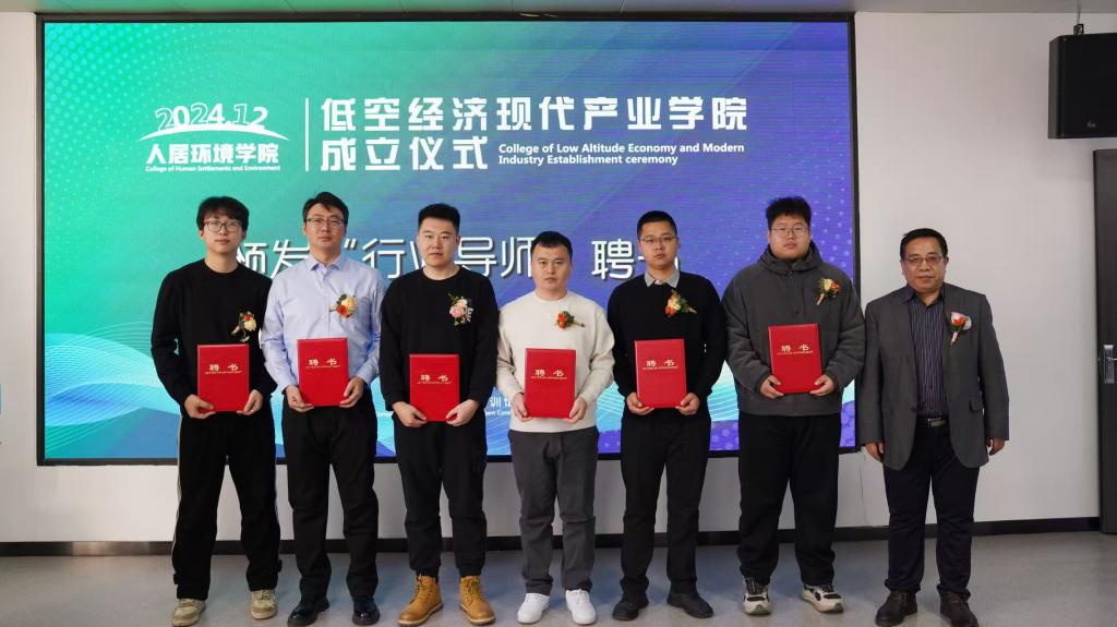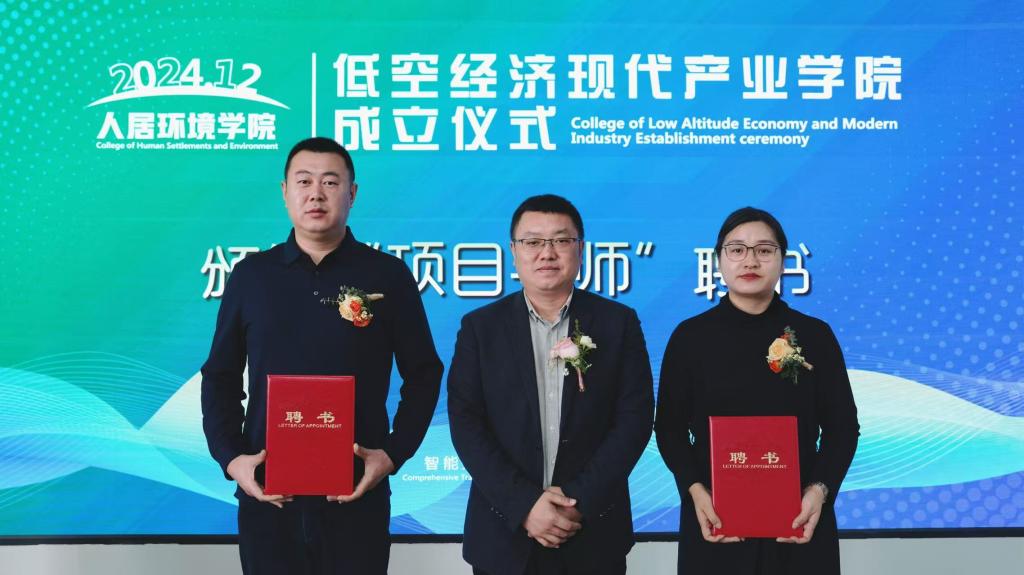 康平军副校长、顾凤岐处长分别为低空经济现代产业学院“项目导师”、“企业导师”、“校内导师”颁发聘书。